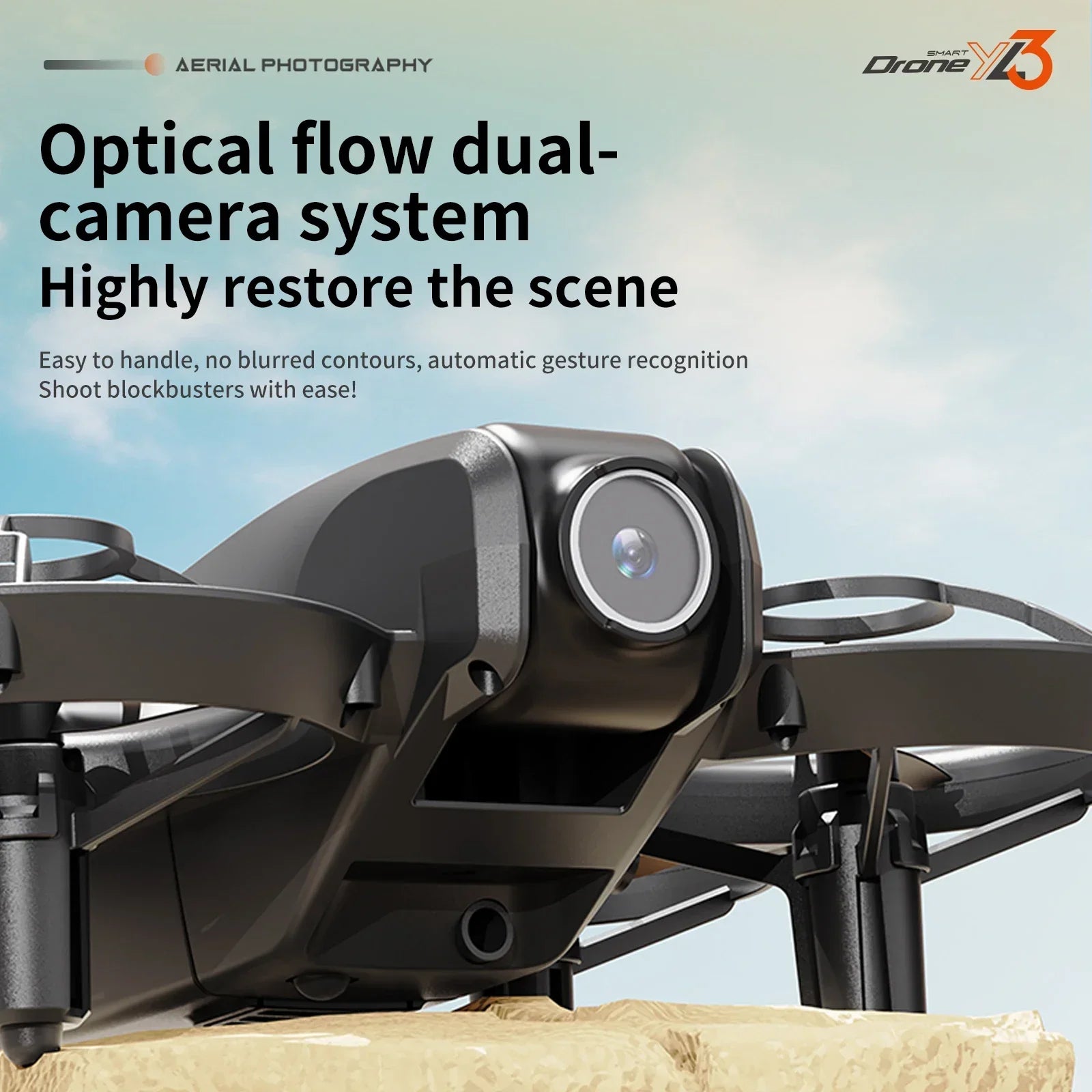 Adjustable camera, dual-camera switching, optical flow hover, one-button start/stop